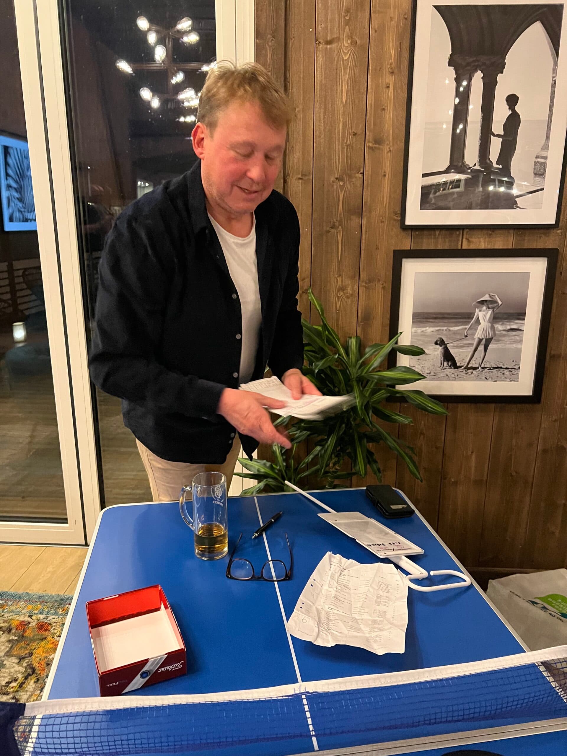 Innan vi gick in till restaurangen körde Långe Jan en ”live quiz”. Tävlingsbollarna blev lag igen och övriga blev ett eget.