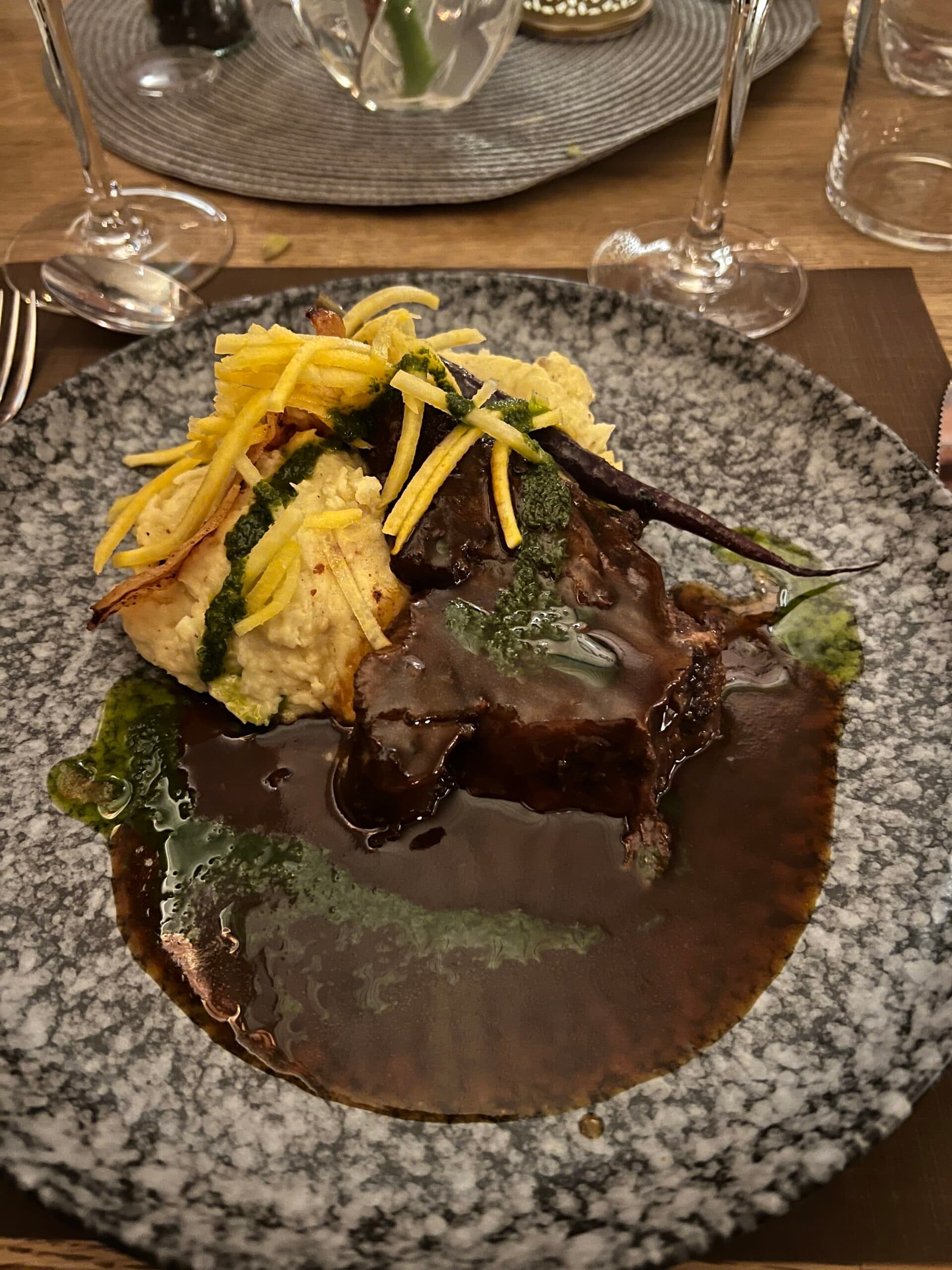 Middagen som Micke presenterade visade sig vara en kulinarisk upplevelse som inleddes med en härlig soppa, oxkind till varmrätt och en utsökt pistageglass.
